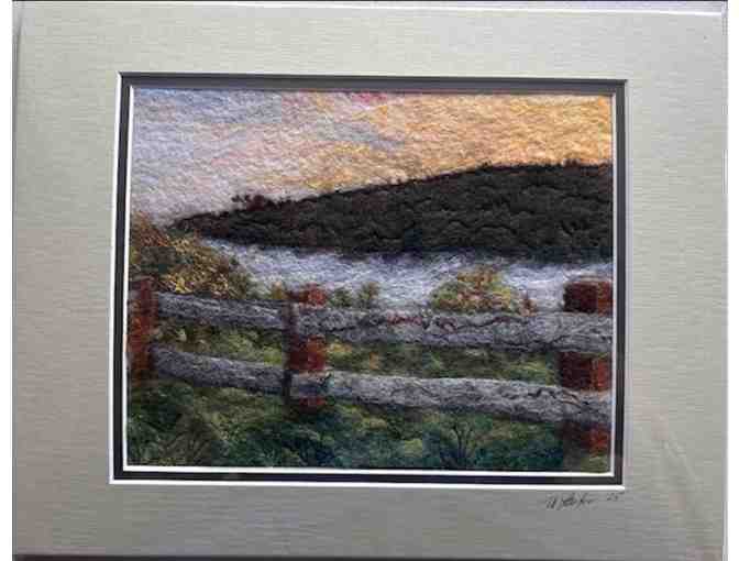The artist, Marion Lauter, brings to life the Mad River Bluffs of McKinleyville, California. The river and bluff are created through a wet felting technique using wool and other fibers that truly captures the essence of California's coastal bluffs.