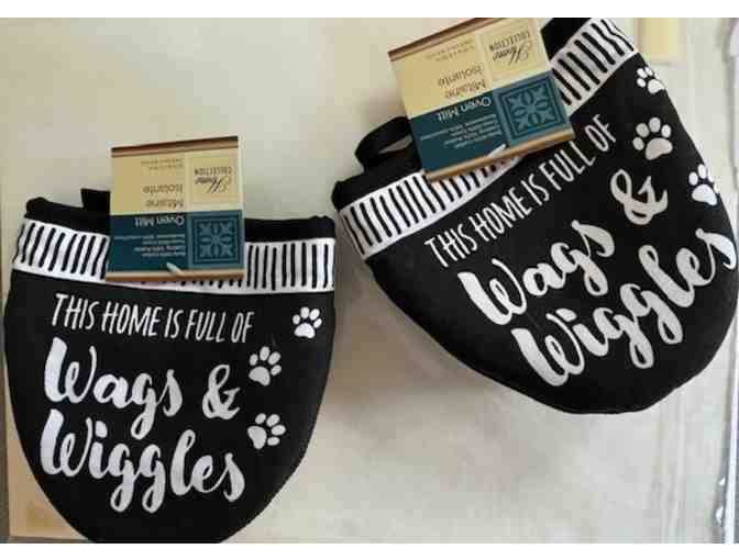 This Home is full of Wags and Wiggles set of two mini oven mitts