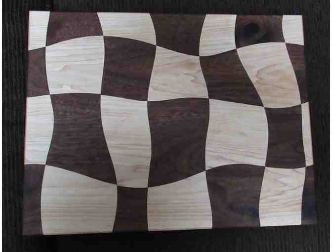 This cutting board was made by local woodworker Andrew Lauter and is new.