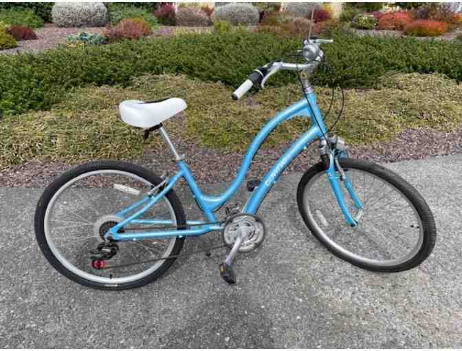 This is a 21-speed bicycle, not an electric bike. Beautiful gently-used Electra Townie 21 bicycle, one step-through model. Only ridden a few times and garaged for years. The 21-gear speed makes for comfortable riding.