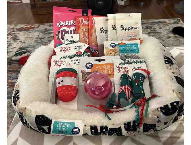 Treat your cat(s) with the items in this collection. Includes a “cuddler” cat bed, six different types of treats, a pop-up tent, cat brush and toys! All items are approved by Chandler Flynn (see pics).