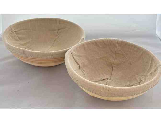 This is a set of 2 Proofing Bread Baskets. One is 9 inch the other is 10 inch. They are made of rattan and have a removeable liner.