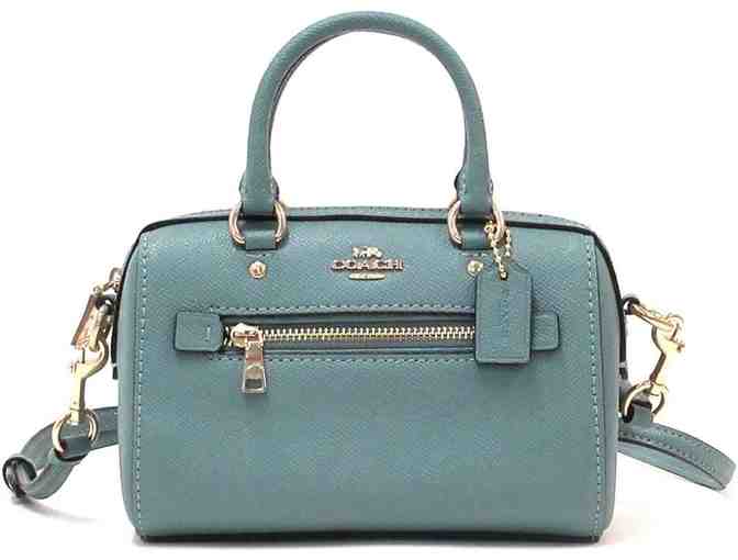 Discover the timeless elegance of the Coach Baltic Blue Mini Rowan Crossbody, crafted from high quality leather with gold tone accents. A perfect choice for everyday use.