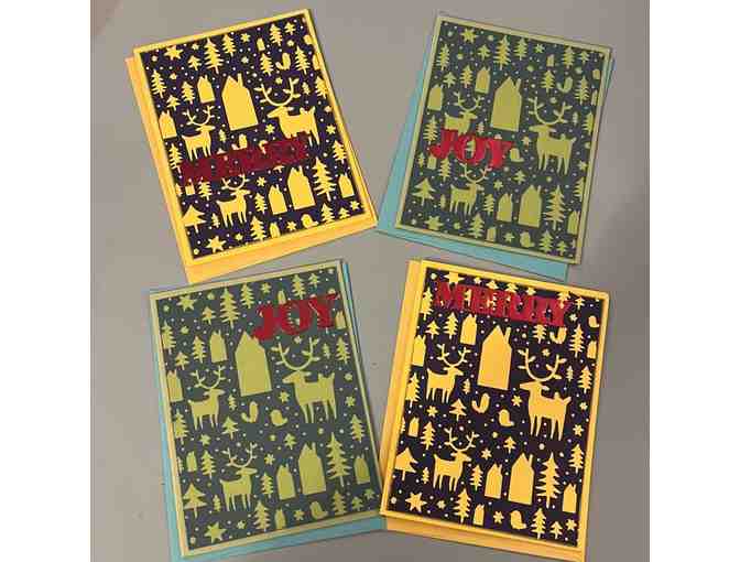 Handmade greeting cards with 2 Joy, 2 Merry (set of 4)