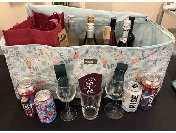 Enjoy an assorted collection of wine and beer from throughout Rhode Island, Massachusetts, and Connecticut! This basket is sure to make anyone who enjoys to sip on locally made drinks very happy! Included are wines from Jonathan Edwards Winery (CT), Truro Vineyards (MA), Greenvale Vineyards, (RI), Newport Vineyards (RI), Gooseneck Vineyards (RI), Holmberg Orchards & Winery (CT), and Longview Cider House (CT), seltzers from Berkshire Brewing Company (MA), and beer from Wormtown Brewery (MA) and Whalers Brewing Company (RI).