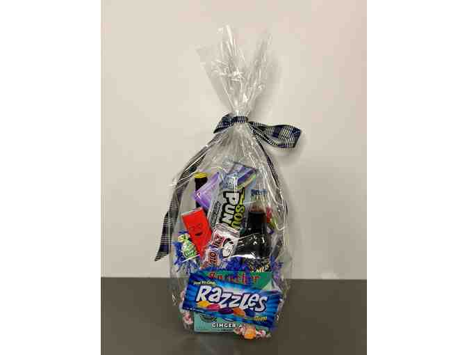 Satisfy your sweet tooth with this jam-packed candy basket from Rocket Fizz Kzoo! Filled with a huge assortment of nostalgic candies, chocolates, and specialty soda pop, this basket is bursting with flavor and fun!