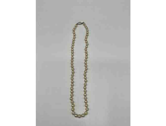 Very uniform, well-matched, good luster cultured pearls, knotted between each pearl