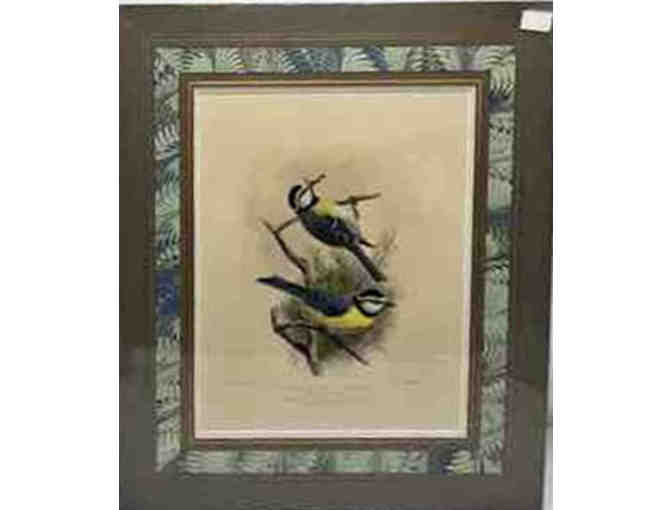 Hand colored original print of White bellied titmouse and Canarian blue titmouse, elegantly matted and signed by the illustrator John Gerrard Keulemans