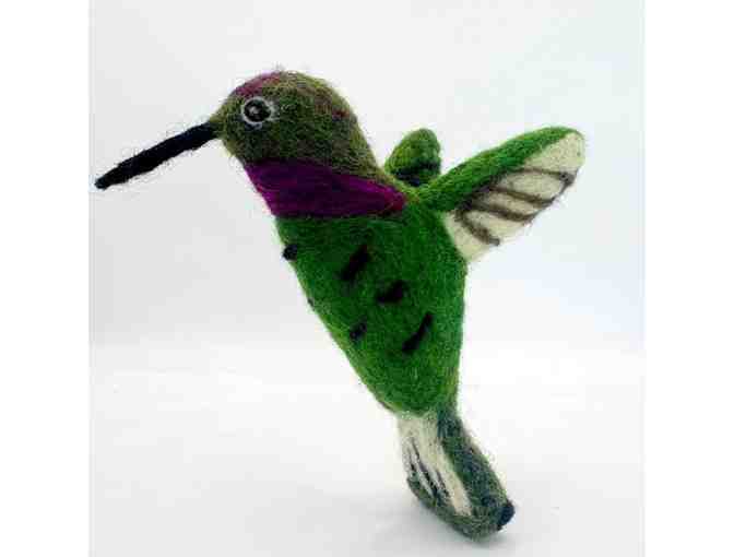 Felted hummingbird ornament handmade in Peru from the Spectacled Bear Conservation