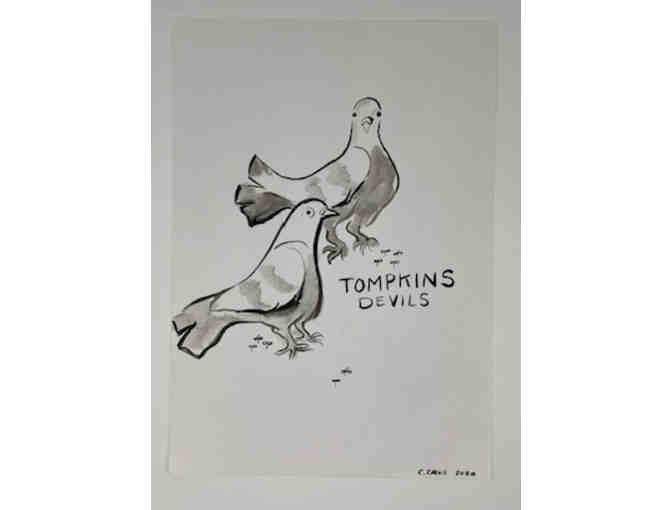 Ink drawing of Tompkins Devils by C. Cruz 2020