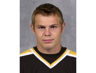 A puck autographed by Sergei Samsonov left wing for the Boston Bruins.