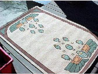 Based on a circa 1910 Gustav Stickley scroll drugget design, this 2'6" x 4' hooked rug is recreated in the original colors.