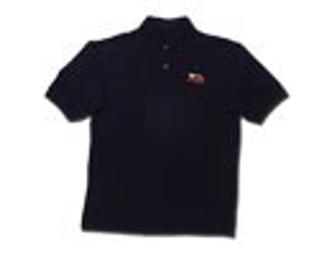 Black polo shirt, size Large with embroidered logo (shown) plus 3 certificates, each good for a burger, fries and beverage.