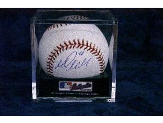 Oakland A's baseball autographed by Mark Mulder, 2004 All-Star. Comes in a plastic display case.