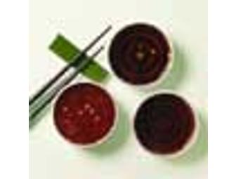 3 different flavors:Steak Sauce, Lite Soy Sauce and Tonkatsu Sauce in 10-11.75oz bottles.