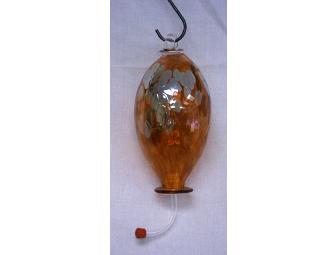 Glass hummingbird feeder, as shown in picture. Salmon color with decoration. Hand made in the Czech Republic. Includes hook for hanging and brush for cleaning.