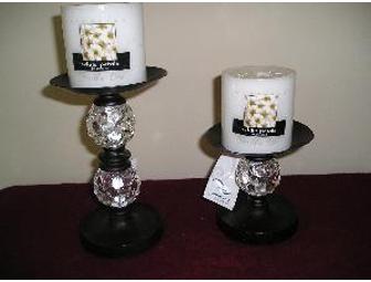 Beautiful scented candle set with taper holders made of steel and glass are great center pieces.