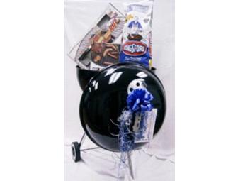 22 1/2" Weber Kettle BBQ (as shown), plus a 10 lb. bag of charcoal briquettes and cooking utensils.