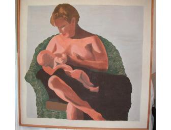 This impressionistic acrylic painting (30.5 inches square)portrays the intimate moments of connection between mother and child. Artist Fred Swarr created this painting in 1991.