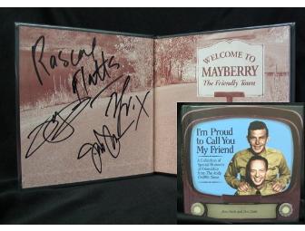 This is a hardcover book, approximately 6 inches square, called "I'm Proud to Call You My Friend: A Collection of Special Moments of Friendship from The Andy Griffith Show." All three members of Rascal Flatts autographed the inside cover of the book, in honor of their hit song "Mayberry."