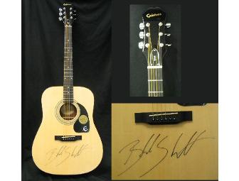 Blake Shelton has autographed an Epiphone acoustic guitar. Other than being handled for autograph purposes, this guitar is brand new.