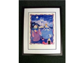 This item is a limited edition litho from the animation Disney classic Cinderella, as well as an actual piece of animation cell. It is professionally matted and framed in a thick black wood frame.