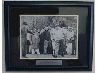 'This is a vintage 11x14 photograph of legendary tv actor/comedian Jackie Gleason and Arnold Palmer playing in a charity golf classic at Shawnee Golf Course in Pennsylvania. This photograph is professionally matted and framed in a cherry wood frame. Original photo, limited edition.'