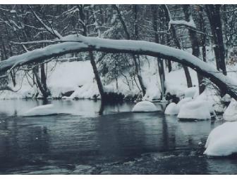 Framed, matted 5" x 7" photo of the Quinapoxet River, which parallels the Mass Central Rail Trail in West Boylston and Holden.