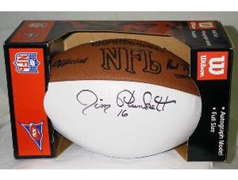Authentic NFL Wilson football with Jim Plunkett's autograph on the front. Football is in original package.