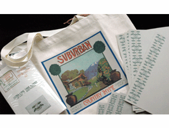 This delightful threesome from Country Thyme will warm the cockles of your Arts & Crafts heart. The counted cross stitch ginko table runner kit includes fabric, threads, needles, chart and instructions. The large canvas tote with vintage label featuring a bungalow in Orange Grove will be your new favorite go-everywhere bag. Finally, keep in touch with your Arts & Crafts friends with a deluxe stationery set with 30 printed 8.5 x 11" sheets and matching envelopes.