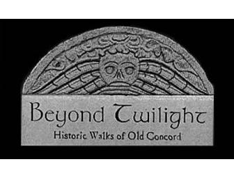 The successful bidder will be able to choose from one of two tours offered by Beyond Twilight. "An American Odyssey" is a leisurely stroll of Concord's paths, graveyards, and neighborhoods, which covers 300 years in the evolution of a town and country. "Spirits, Legends, and Lore" is the area's only walk that saunters into tales of the unknown and the paranormal. There is more lurking in the shadows of Concord's past than minutemen and poets. Both tours are the result of extensive research and are conducted by licensed guides.