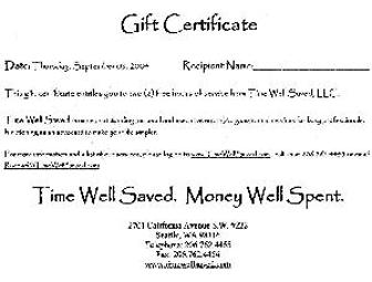 Time Well Saved provides personal and executive errand and organizational services to busy people all over Seattle and the surrounding neighborhoods. We can pick up your groceries, take your clothes to the cleaners, or even help you hire a housekeeper. While your employer has you hard at work, we'll be hard at work for you.