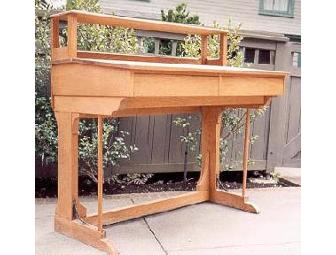 Here's the perfect addition to your home office. Hand-crafted in solid oak, this drafting table features sloped top, two drawers, shelf and can be easily disassembled for moving.