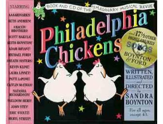 Sandra Boynton, long heralded for her menagerie of animal characters (Moo, Baa, La La La; Rhinoceros Tap), puts a fresh cast of singing, dancing critters center stage-from the titular boogying chickens to a tail-wagging "snuggle puppy"-in Philadelphia Chickens, a book-and-CD package billed as an "imaginary musical revue."