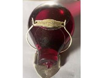 For auction is this well preserved, 5 1/4" fire grenade extinguisher containing reddish-purple liquid. It is accompanied by a similarly well preserved mounting bracket with very readable lettering. The outside brace says: Shur-Stop / REG. U.S. PAT. OFF., and the plate reads, in part, "THROW AT BASE OF FLAMES, IF ABSENT, Shur-Stop WORKS AUTOMATICALLY..." Dating from the early Twentieth Century (perhaps as late as the 1920's) either the grenade nor the bracket show noticeable signs of wear. Close inspection reveals a tiny scratch on the bracket, mentioned for accuracy.