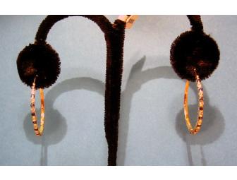 These stunning hoop earrings flash with the brilliance of genuine diamonds and sapphires, cradled in open-backed settings to maximize their color and clarity. Featuring 17 round, brilliant cut stones mounted in 14 Kt. gold, each of these beauties measures 1" diameter. This item comes with a certified appraisal.