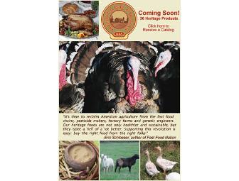American Bronze Turkeys: A true fact: of the 240 million turkeys consumed in this country last year, 99.999% of them were the mass-produced, genetically engineered, tasteless Broad-Breasted White. But that hasn't always been the case. The American Bronze turkey-named for its unusual color, a shimmering metallic red-was THE Thanksgiving turkey for almost 150 years. These birds boast an outstanding texture and taste, prompting Marian Burros of The New York Times to marvel at their "deep, rich flavor", and are, in her words, "the essence of turkey." Find Heritage Foods Turkeys and more at: www.heritagefoodsusa.com