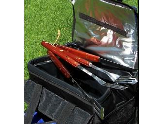 You'll find plenty of uses for this handy picnic cooler on wheels and set of 3 barbecue tools.