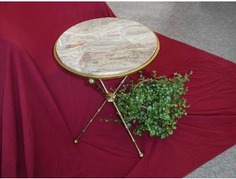 This supremely elegant vintage bronze table with 3/4" Italian marble top*, circa, 1940 measures 17" in diameter by 2' in height. A classic accent piece for any decor. This table retails for $1,000.00!