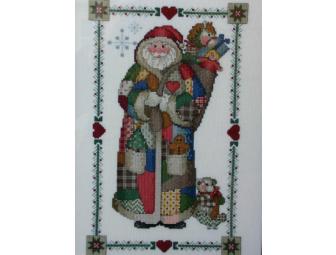 Framed 'Santa' counted cross stitch by Sharon Hsu, 13" x 18"