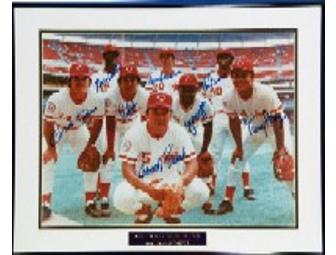 Relive the glory with this framed, double matted photo of that year's starting eight: Rose, Bench, Morgan, Perez, Foster, Geronimo, Griffey and Conception. Item measures 16" x 20".
