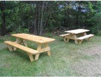 Designed with lots of extras; extra room on the table ends for additional benchs or a wheelchair; extra room on the bench ends so you can sit without lifting a leg over the bench; and a leg design that allows the table to standup for easy cleanup and storage.