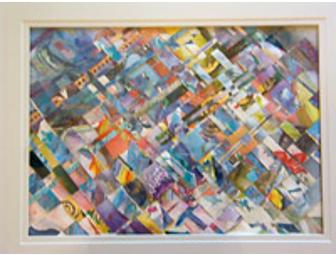 Framed mixed media piece by Philomath, Oregon artist, Donna Beverly, created for an exhibition in 1999. Framed size is 16" x 20" and image size is 10" x 14".
