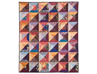 This collaborative work is inspired by the bold, graphic Log Cabin Variation quilt and the rich colors of Broken Dishes. A palette of saturated warm and cool colors are placed in a distinctive diagonal pattern. The lines of this pattern are boldly crossed by placing concentric quilting circles centered on alternating squares. These circles give a sense of floating across the quilt, which creates a visual rhythm that adds another dimension to the beautiful quilt top. A secondary pattern is created by the outside edge of these circles. Stippling is used to emphasize the middle squares and blend the colors. Dimensions: 50" x 59"