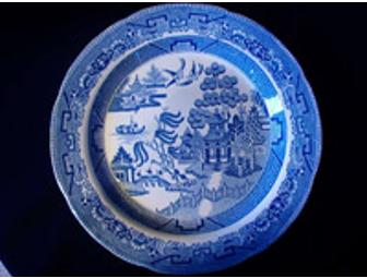 10" diameter plate, cobalt blue and white. Marked "Harley & Co.". Stencil design.