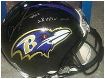 'This is a hand signed official Baltimore Ravens Helmet signed by middle linebacker Ray Lewis. This Helmet is an official Riddell identical to the one Ray uses in NFL Games. Lewis is the top defensive player in the NFL. He leads his team, plays hurt, punishes blockers, anticipates plays and strikes fear in offensive players -- and that's just in practice. Ray lead the Ravens to their first Super Bowl title in 2000.'