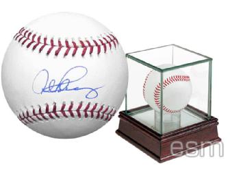 This official Major League Baseball is hand signed by Alex Rodriguez. Included with this item is a glass case with a cherry wood base. Item includes a Certificate of Authenticity.