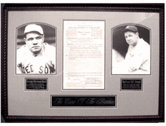 Babe Ruth 'Curse of the Bambino' masteriece with copy of transfer from 1919- Red Sox to the Yankees with photos and nameplate (color of frame & matting subject to change).