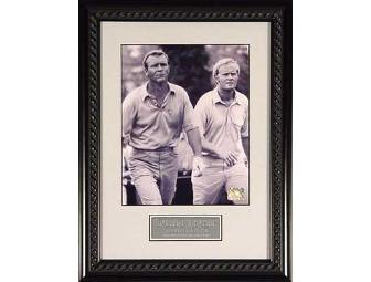 Arnold Palmer & Jack Nicklaus are seen here in one of the greatest photographs in golf history. Taken at the 1971 Team Championships Tournament. Professionally framed in a museum quality cherry wood. This photo is 16x20 with an overall size of 22x28.