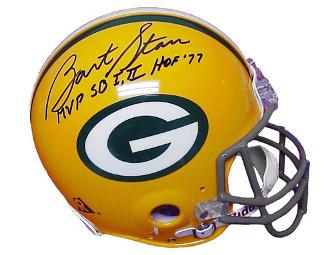 This authentic full size Green Bay Packers helmet is hand signed by Bart Starr. Certificate of Authenticity is included.